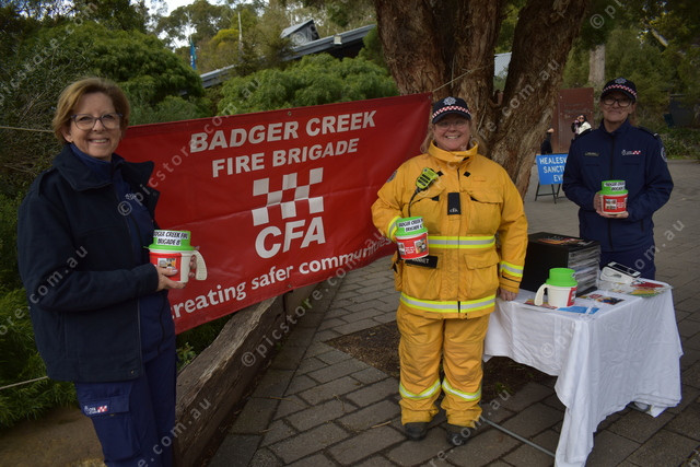 Badger Creek CFA’s (L-R) Mandie, Sally and Kerri raising vital funds for the fire brigade. (Dongyun Kwon: 500000)