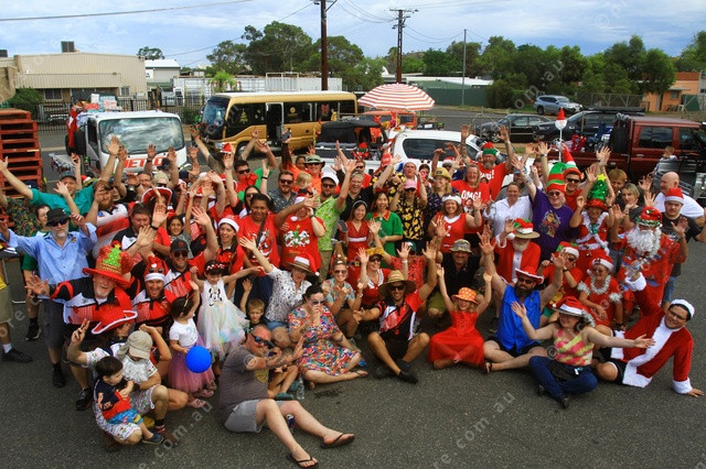 VOLLIES: The Icy Pole Run volunteers before they set out to spread some Christmas cheer on the streets of Alice Springs. (PIC: PHIL WILLIAMS 448781_04)
