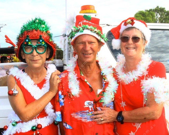 CHEER: Carolyn Amos with John and Laurel Hunter getting ready to spread some cheer. (PIC: PHIL WILLIAMS)