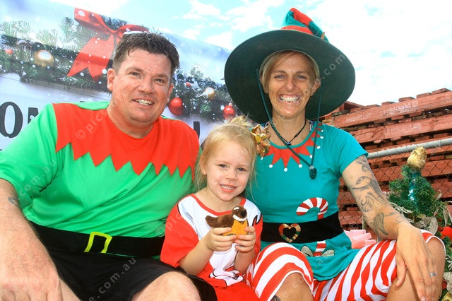 JETCOR: Garth and Katie Thompson with Amity Hewitt spreading the Christmas message. (PIC: PHIL WILLIAMS)