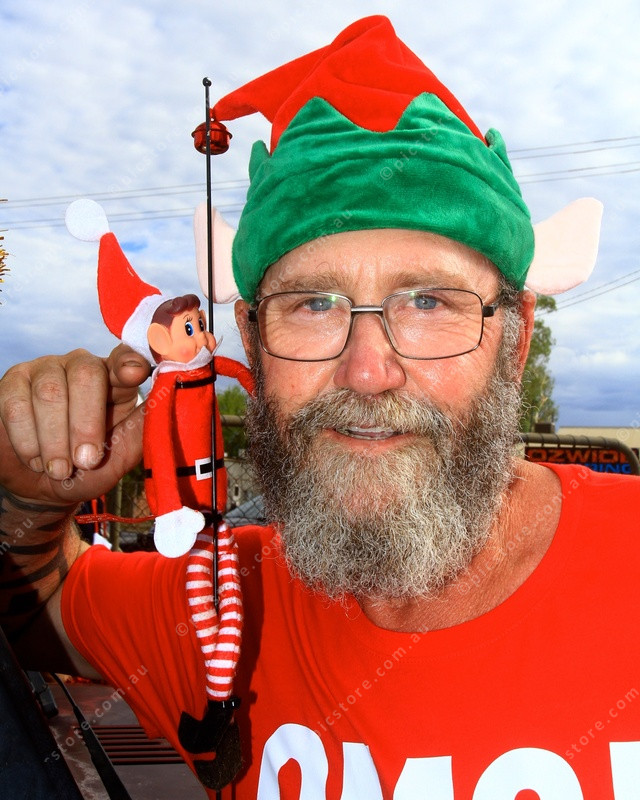 ELVES: Elf Lance with Elf on a Shelf at get ready to head off on the Icy Pole Run. (PIC: PHIL WILLIAMS)