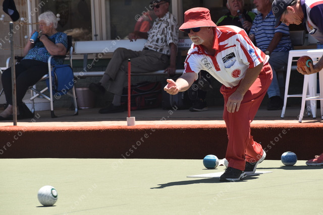 Mid North skip Ryan Longmire watches as his bowl heads towards the jack. (453206)