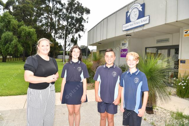 Kinglake West Primary School. Pic of principal Courtney Smith with school captains Kayla, Emmett and Zander. Photo by Damjan Janevski. 378625_02