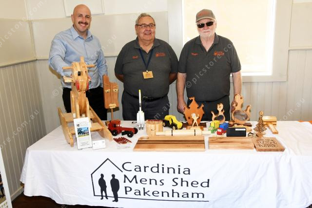 Cardinia Mayor Jack Kowarzik with Geoff Fluck and Roger Barnett from the Cardinia Men’s Shed Pakenham 390922_04