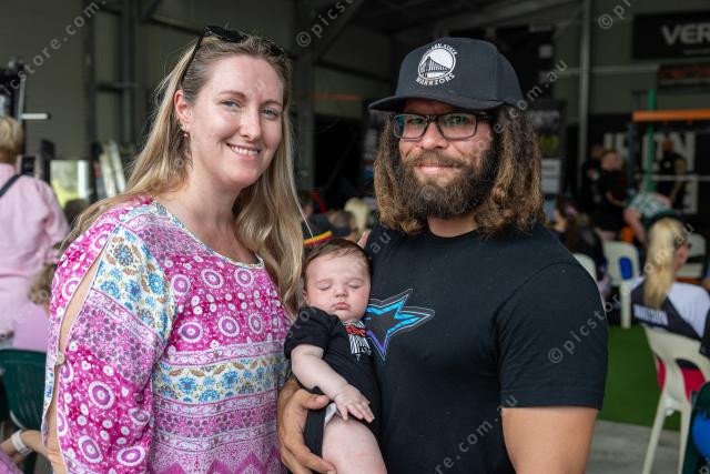 Sophia Alexander and Jared Morgan with baby Zahli.