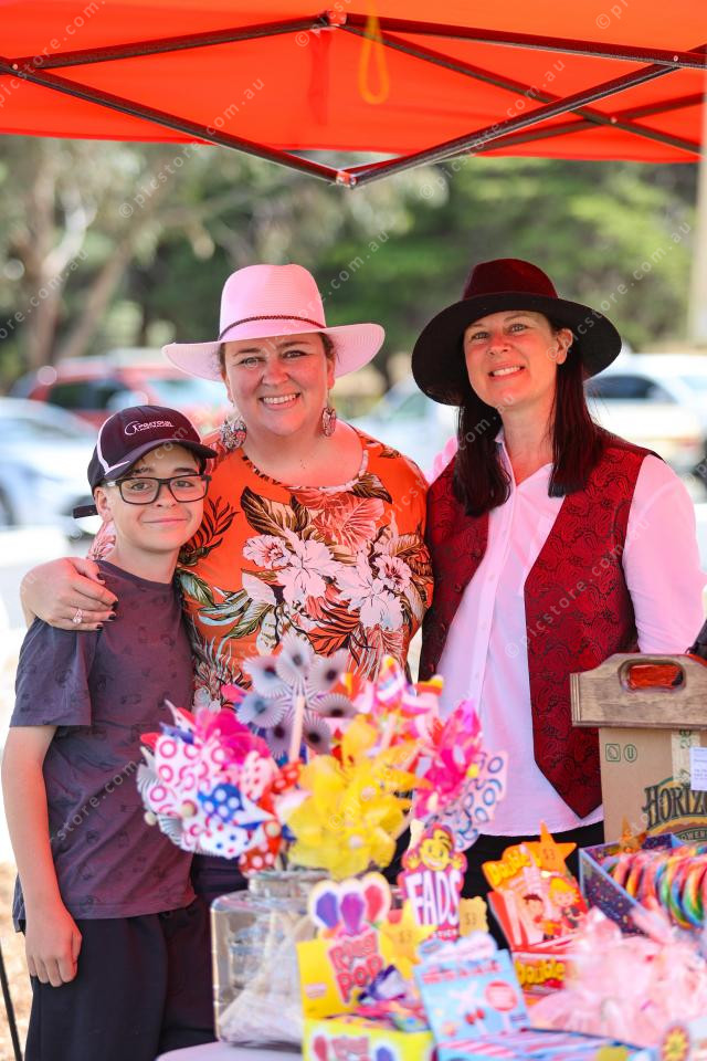Kell and Zen Burgess, of Carrickalinga, visit Renee Hutchinson at the Lollies and More@84 stand. Photo: Jesse Ehlers 371012_02