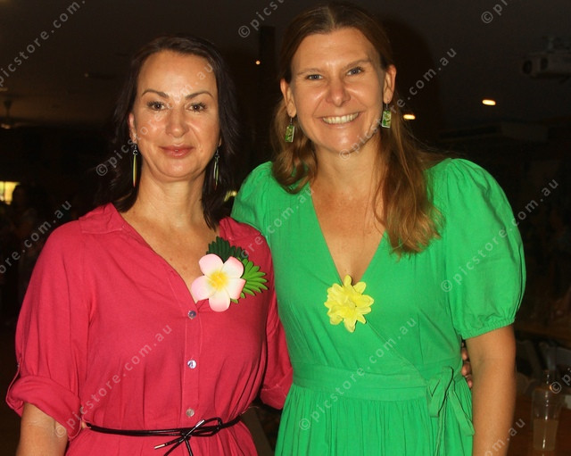 FLOWERS: Kylie Elston ans Pippa Leembruggen took a floral them to the IWD event at the brewery. (PIC: PHIL WILLIAMS 465193_03)