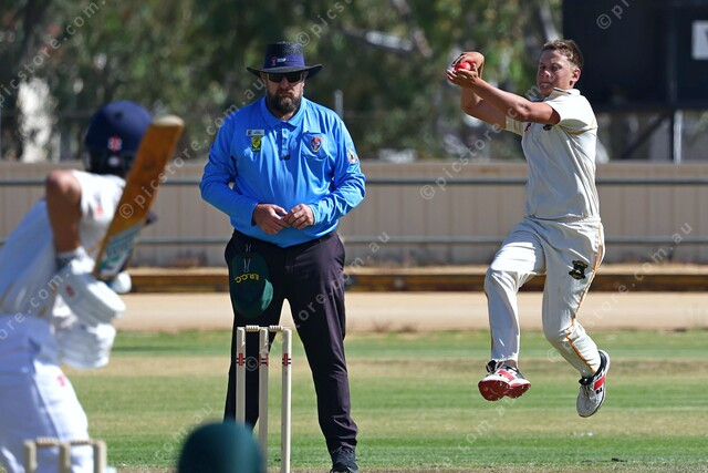 Eudunda Robertstown’s Bryce Heidrich on his way to four wickets against Gawler Central on Friday evening. (Michael Slattery: 529235_01)