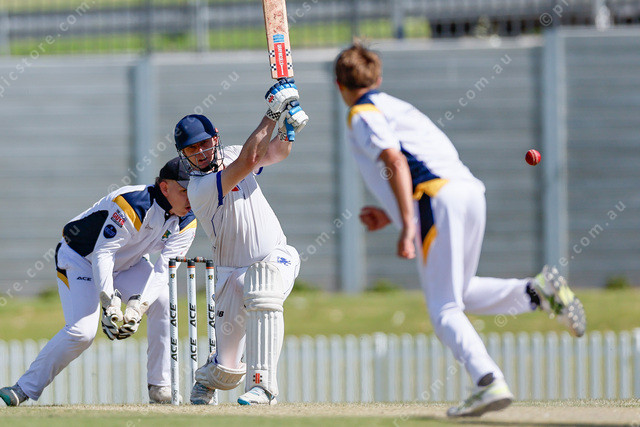 South Gawler’s Dael Redmond pounds one back past the bowler. (529251_08)