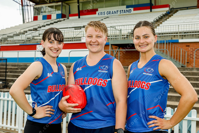 Angaston’s Hayley Henke, Willaston’s Lily Bornholdt and Tanunda’s Alysha Healy in their new colours. PHOTO: Mark Willoughby 454561_05