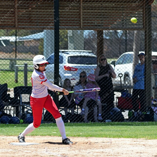 Two Wells’ Lauren Jackson hits the ball over the infield. 454714_02