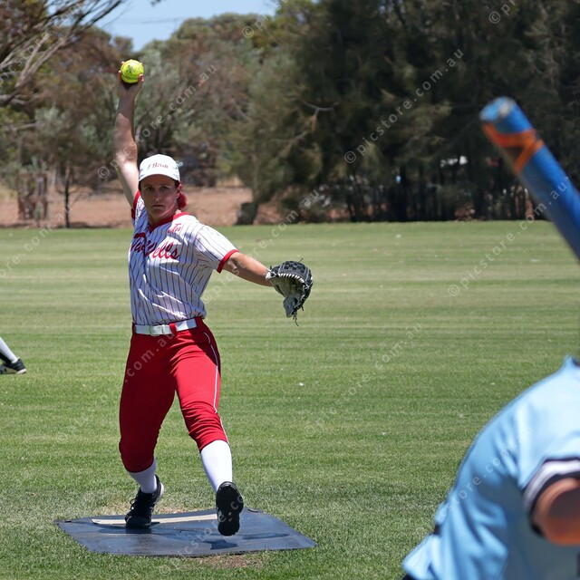 Two Wells’ Jodie Chammen in her wind-up. 454714_03