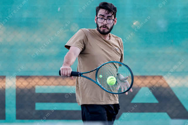 Tony Mammone returns a backhand tight into his body. 454565_03