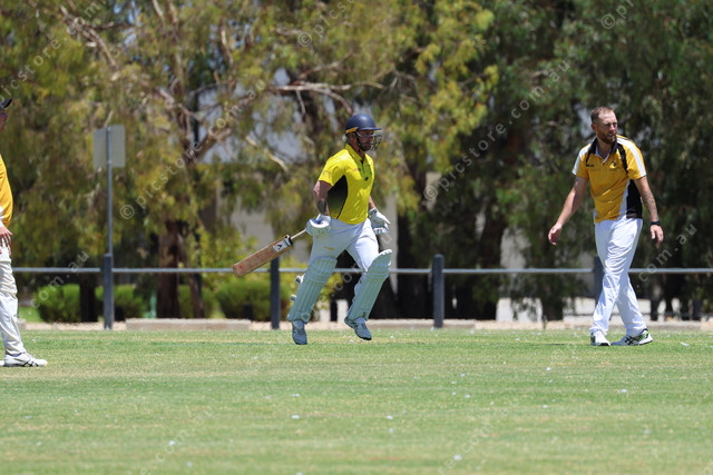 Matt Lee gives a token jog between the wickets as he watches his shot travel to the boundary. 455848_04