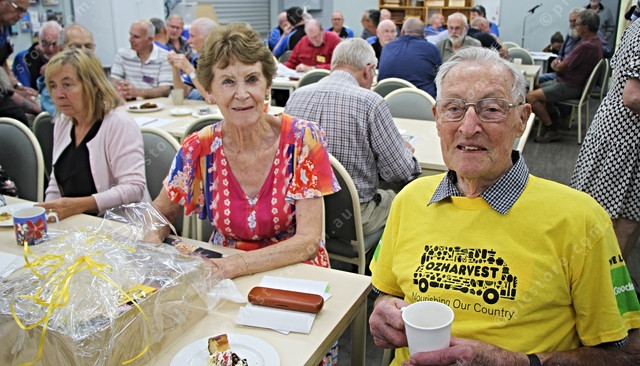 Margaret Kneebone with the birthday boy, Jim Miles celebrating his 100th birthday over cake and coffee. (Dee Elferink: 537530_06)