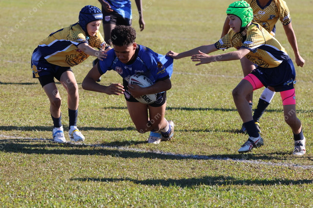 Norths’ Jahleas Kemp dives over for the first try of the 13s game.