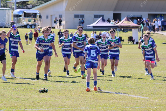 The Capricorn Coast boys sprint in to celebrate as Jed Harris nails the final conversion.