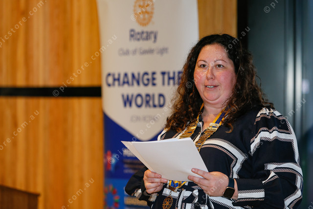 Incoming president Bron Anderson makes her first address to the Gawler Light Rotary members in her new role. (489851_10)