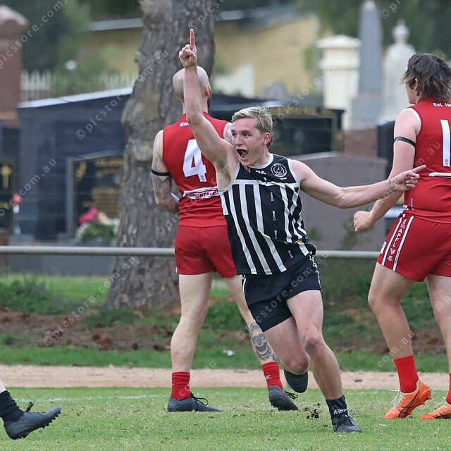 Mallala’s Jesse Trevor celebrates his goal. (491117_03)