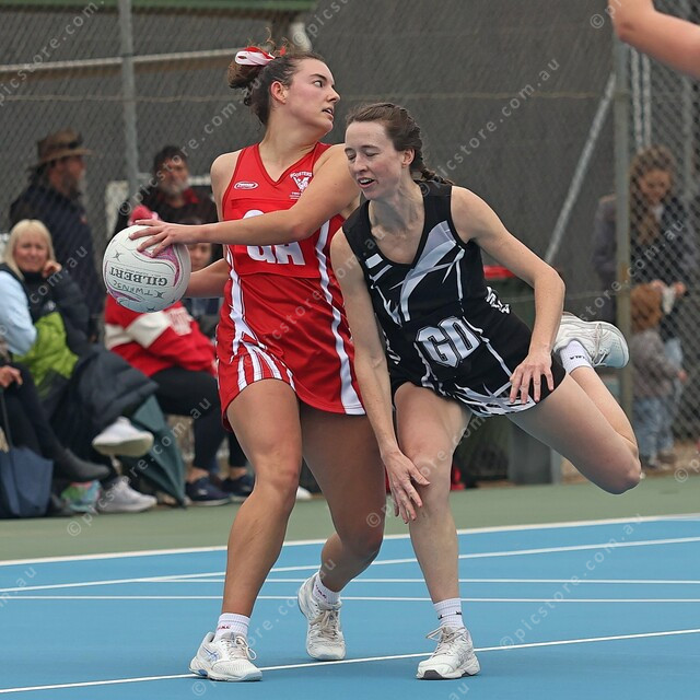 Mallala’s Ashlee Angus narrowly misses an intercept on Lucy Klingberg. (491507_02)