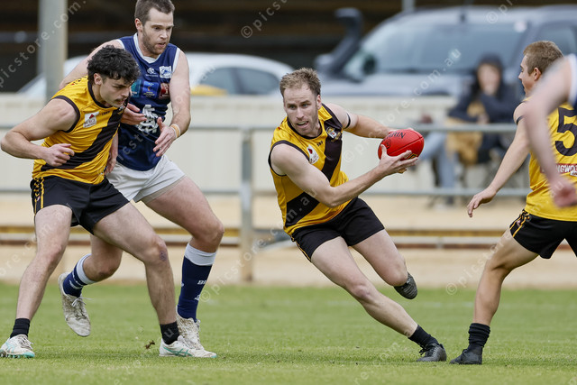 Gawler Central captain Andrew Wright weaves through traffic with the help of a shepherd from Nate Oldman. (491388_01)