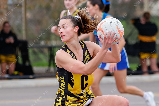 Gawler Central centre Hayley Mundy receives a pass and looks for the next option. (491483_01)