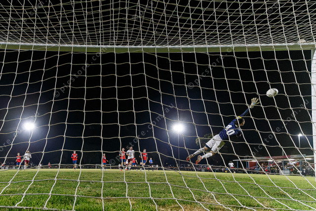 Adelaide United’s goalkeeper makes a diving save. (491423_05)