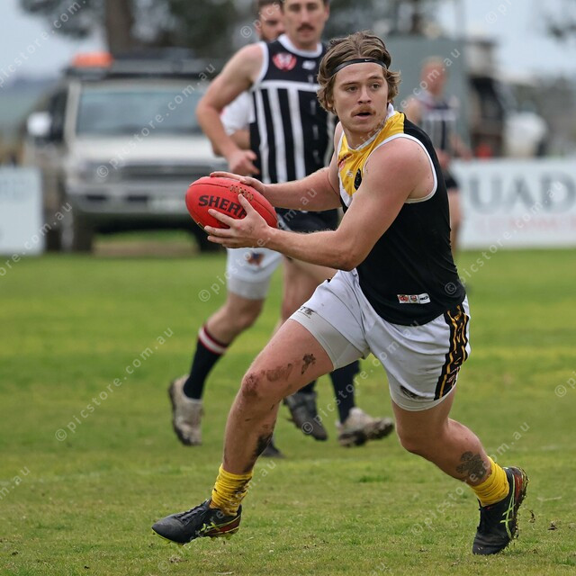 Lachlan Mitchell wheels onto his right boot and looks for an option. (492504_05)