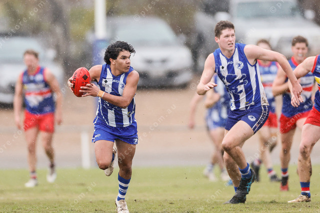 Central District junior Jermaine Miller sprints forward looking for a leading Lion inside 50. (492749_04)