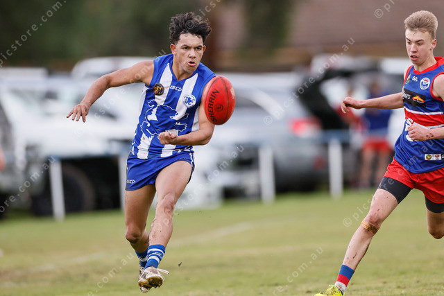 Justin Miller fashions a kick off the outside of his boot. (492491_07)