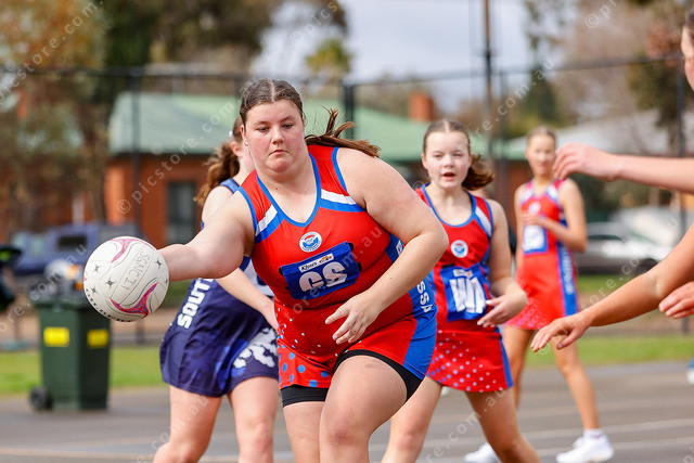 Bulldog Mikaela Freak plays a clever bounce pass into the shooting circle. (492602_05)