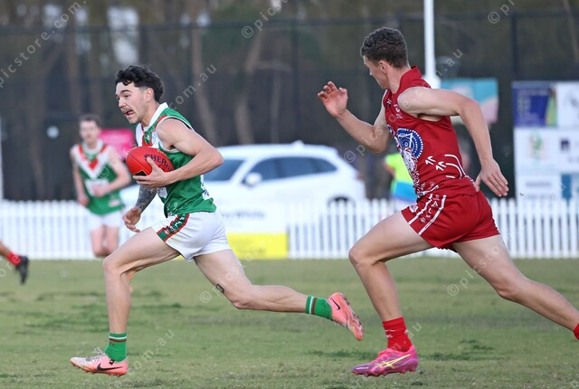 Roosters debutant Michael Daly gives chase to Virginia speedster Cooper Taylor. (488589_09)