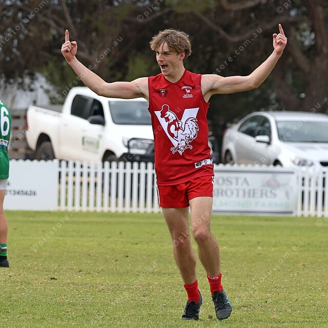 Two Wells backman Michael Barber celebrates one of his three goals after making the move forward. (488588_03)