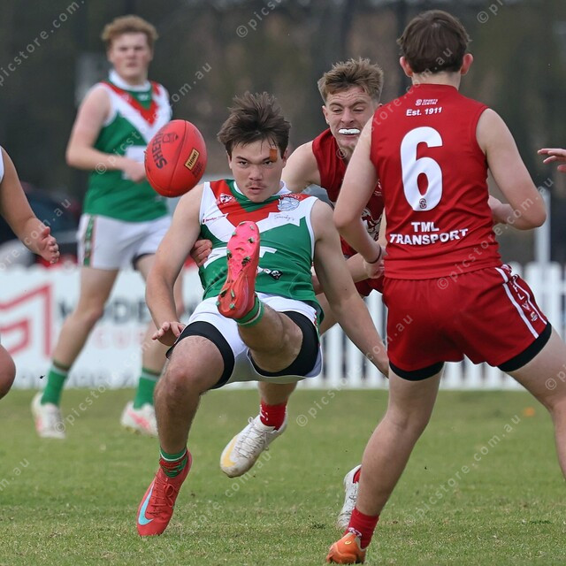 Zack Ellis is dragged off his kick by Riley Ansell. (488588_05)
