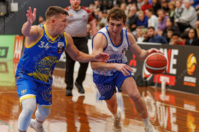 Kalani Sapwell drives with his left hand against NBL talent and Australian international Dejan Vasiljevic. (488609_03)