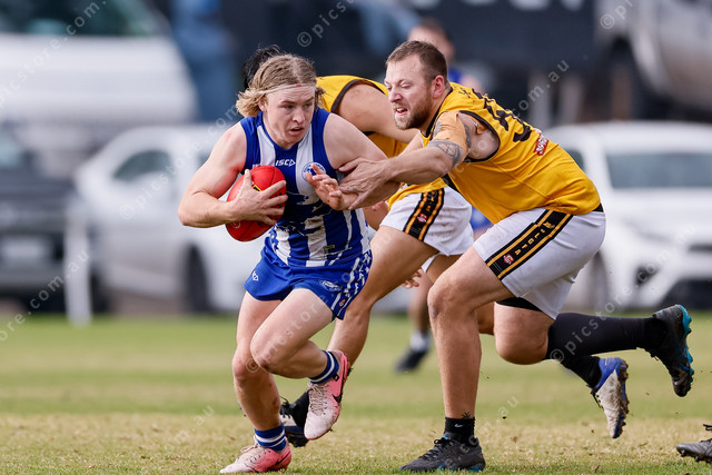 South Gawler’s Jaden Gurney escapes from the attempted tackle by Tyson Duffield. (488608_01)