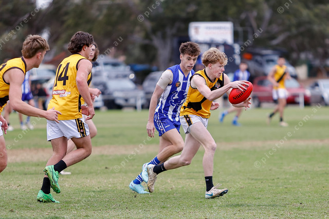 Gawler Central’s Jesse Paul clears out of the backline. (488598_05)