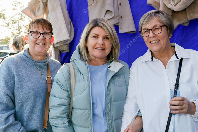 Sue Collins, Deb Koch and Merrilyn Smith in the South Gawler Sponsor’s Day marquee on Saturday. (Mark Willoughby: 488586_01)