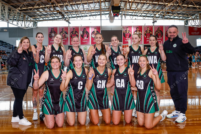 The BLGNA senior team celebrates its Division 2 title at the Netball SA Country Championships. (Mark Willoughby: 483384_01)