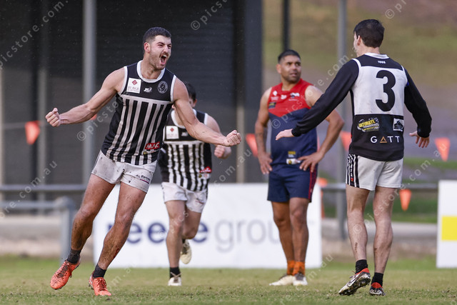 Tanunda’s Jackson Docherty celebrates his late goal to seal the Magpies’ win. (Mark Willoughby: 484656_04)