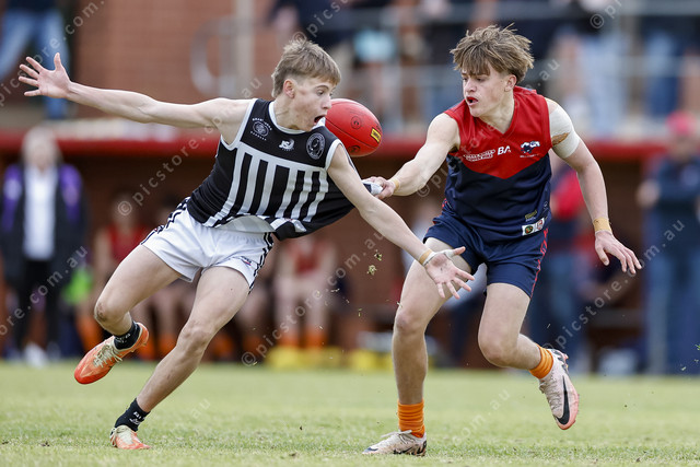 Riley Sieber appeals for a free kick as Willaston’s Blake Harpain takes a tug at his jumper. (484423_03)