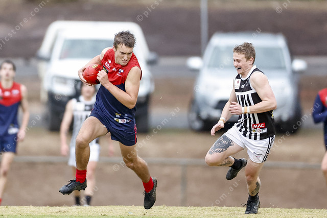 Willaston’s Lachlan Harding turns on the jets to escape the chase from Angus May. (484435_01)