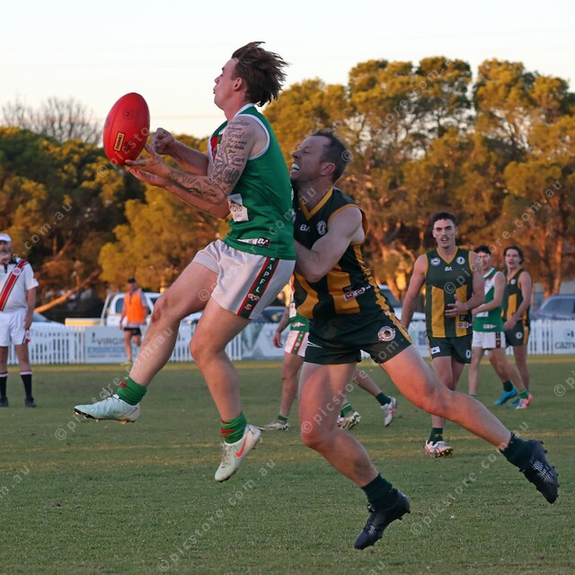 Jaiden Dennie’s marking attempt spoilt by Balaklava’s Jason McPharlin. (485847_05)