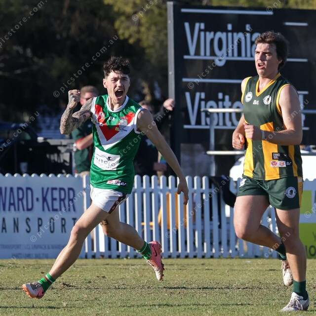 Cooper Taylor celebrates after kicking Virginia’s first goal. (485847_10)