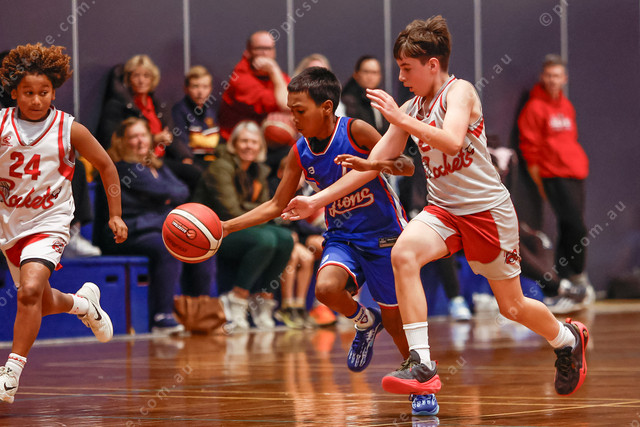 Jannali Miller keeps his dribble alive as a couple Rockets converge. (485853_09)