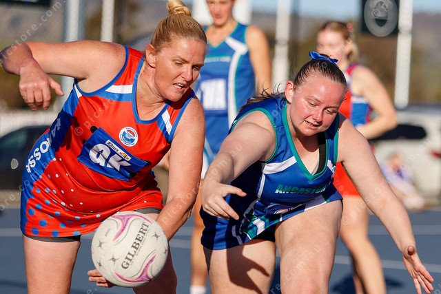Lee Barnett gets to the ball first ahead of Chelsea O’Brien. (486112_03)