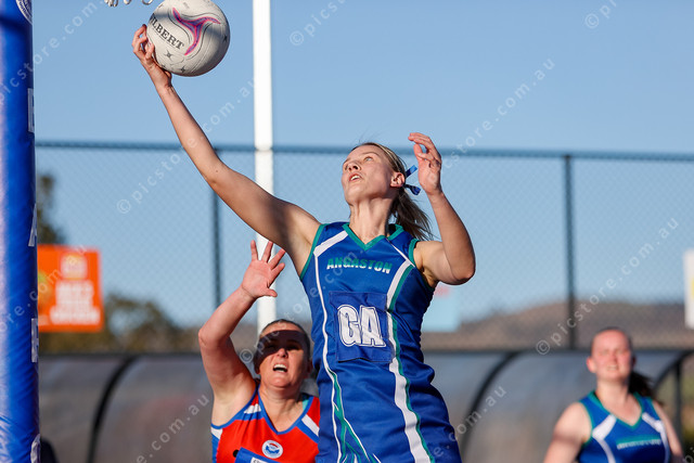 Angaston’s Laura Ide pulls in a high pass. (486112_04)