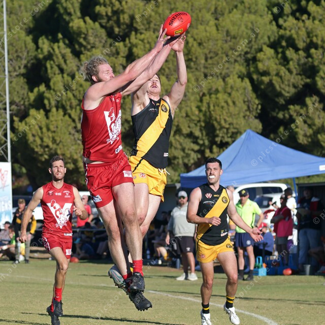 Shannon Slattery and United’s Aaron Marchioro compete the wing. (481635_03)