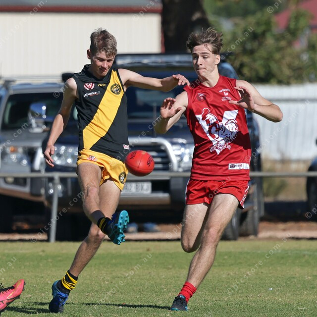 United’s William McArdle gets a kick away before Michael Barber arrives. (481642_06)