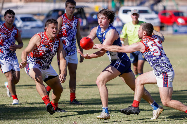 George Ratcliff fires out a handball while surrounded by Donnybrooks. (481625_03)
